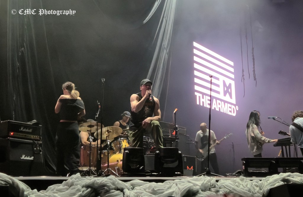 First out at 7pm were The Armed, a hardcore punk collective from Detroit, according to their Wikipedia page. There were nine of them on stage at one point. Words fail me! Thumper Principle duly applied.