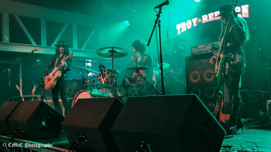 Support for the evening was Troy Redfern. I’d recently read an article in Classic Rock featuring him so was keen to hear him play live. He didn’t disappoint! Troy Redfern is one talented, intensely passionate musician. A man of mystery under his wide-brimmed hat. I’m a sucker for a guitarist who plays a resonator…what can I say? Troy was ably accompanied by Finn McAuley on drums and the petite Keira Kenworthy on bass. Their allotted 30-minute slot disappeared way too fast. A mere six songs ending with a spellbinding Voodoo Chile. Roll on 2022 when this guy returns to Glasgow with his headline show.