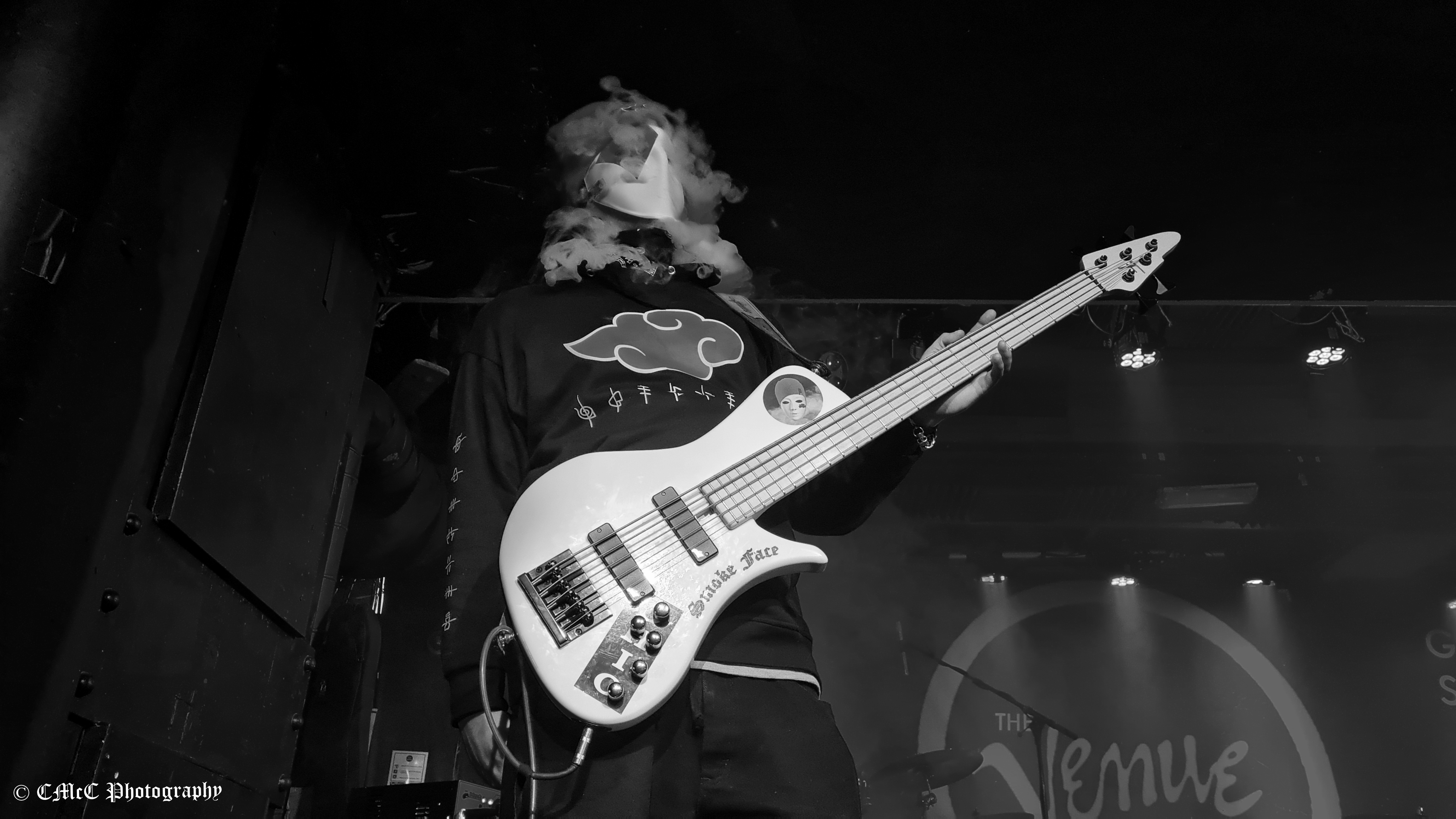 Bass player, Smoke Face, who was standing in front of me slightly to my left, fascinated me. Initially, I was a little taken aback by the beanie hat and full-face mask but loved the quirkiness of the smoke trailing out from under his mask every so often throughout the evening. Different.