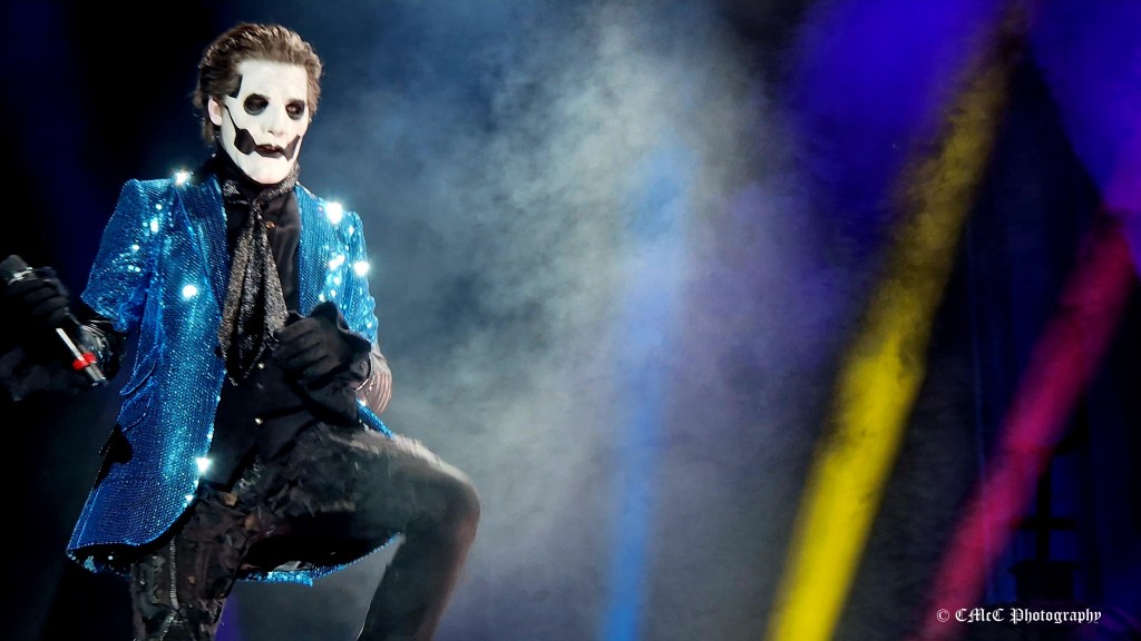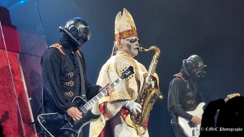 Ghost returned to the stage for a three-song encore which opened with a cover of Metallica’s Enter Sandman. This was followed with Dance Macabre with Square Hammer bringing the evening’s ritual to an end.