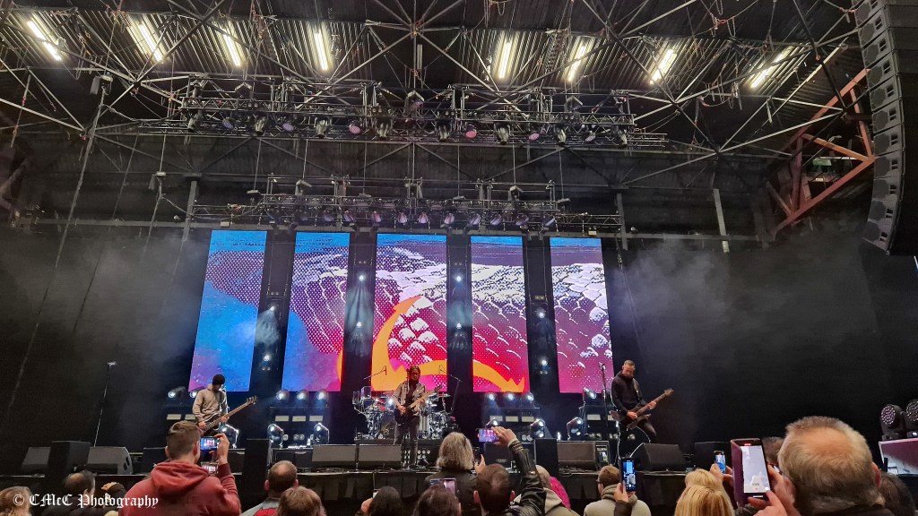 There was a few minutes delay once we were inside the building before we were allowed to enter the arena bowl for our soundcheck experience but we could still hear Alter Bridge working through their pre-show checks. As soon as we were advised that we could enter the bowl, the majority of folk rushed straight to the rail. Personally, I enjoy the soundcheck view from slightly further back, drinking in the whole stage lighting effects. I also love watching the guys at work like this and enjoy hearing the three or four songs or parts of songs that they checked.