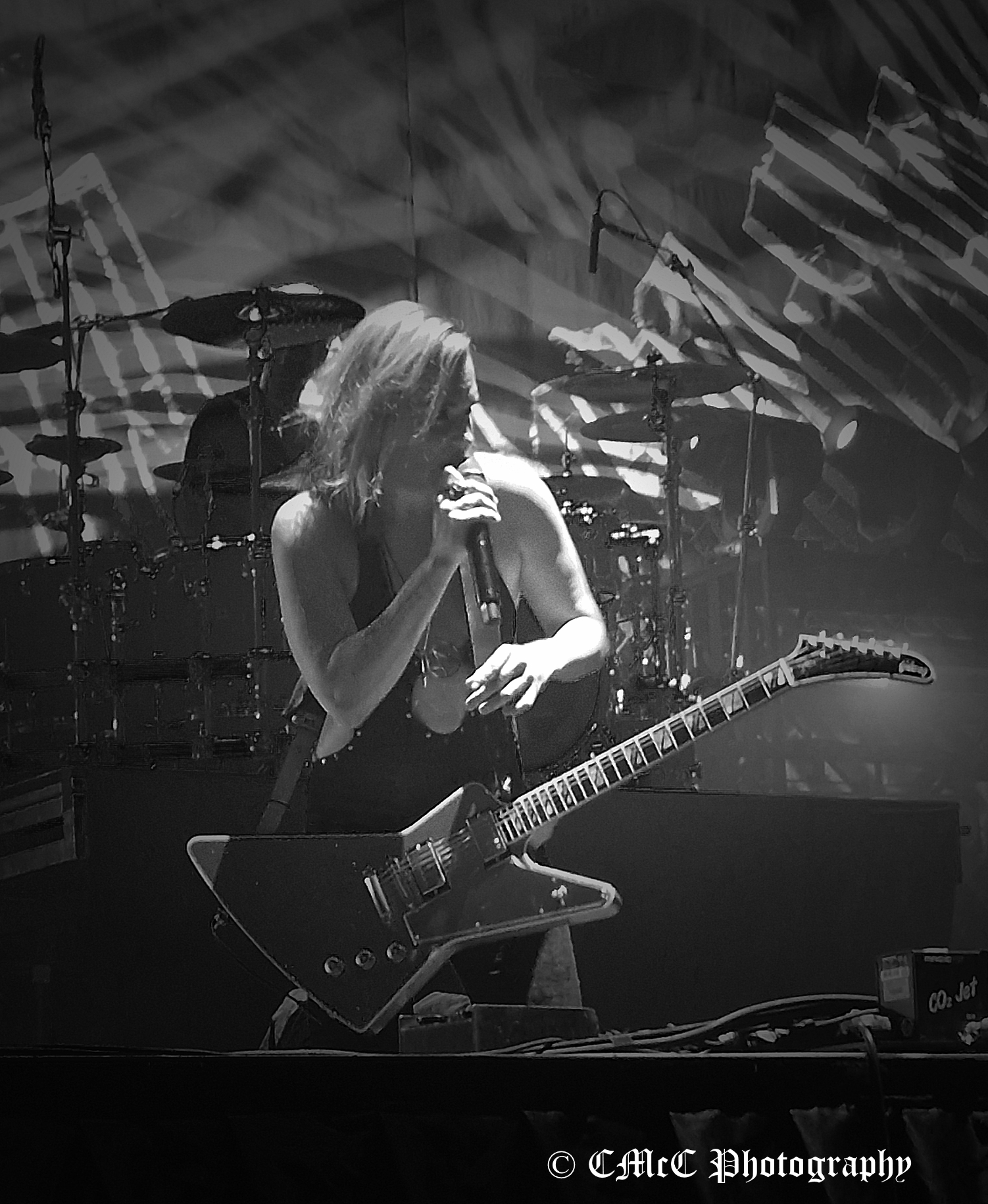 Shortly before 9:00pm the lights went out once more, the intro tape played, the lights pulsed around the stage…. Alter Bridge were in the room and they opened their almost two-hour set with an explosive Silver Tongue from their current album Pawns & Kings.