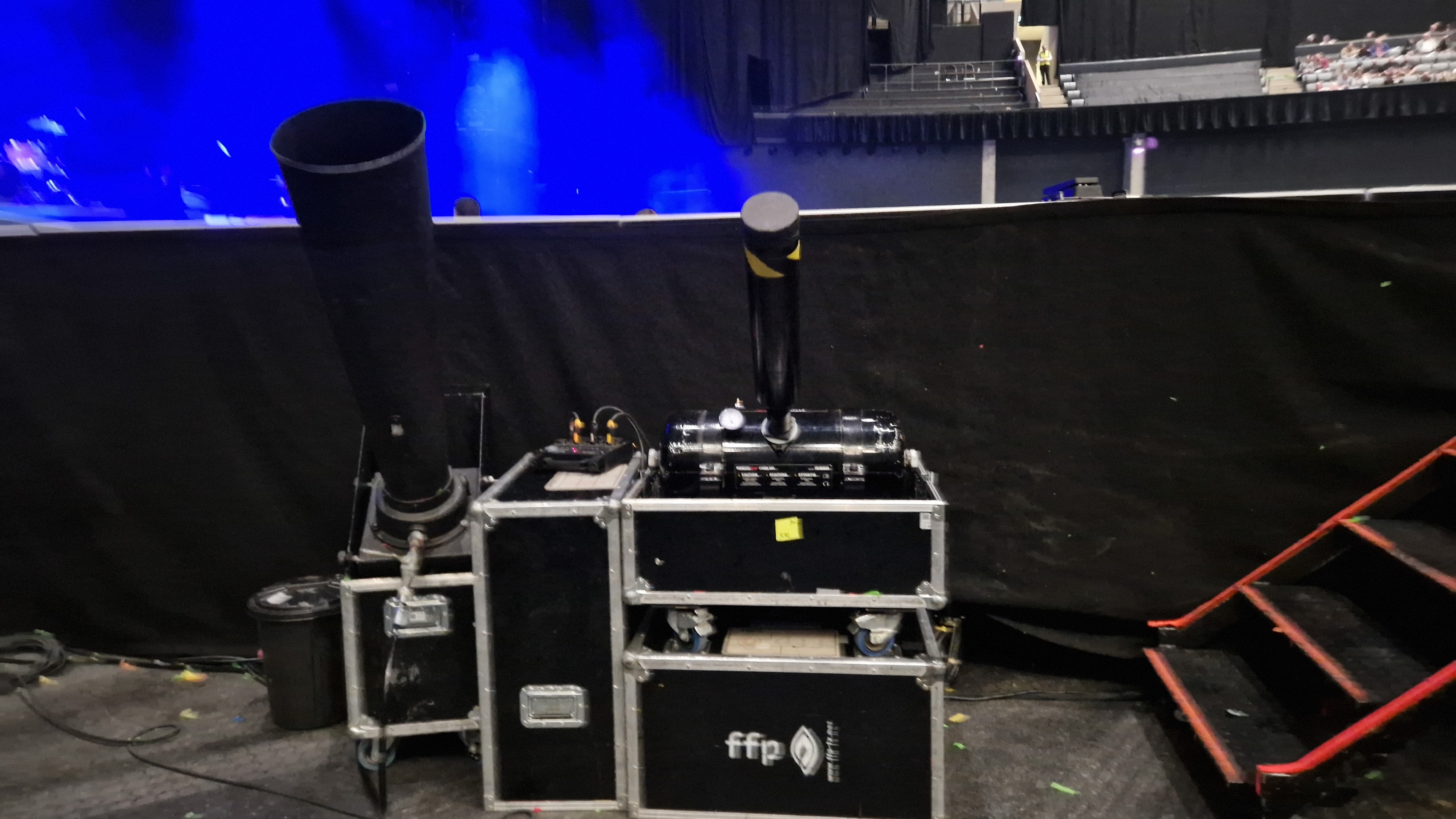 When we entered the arena bowl we were met by a huge horseshoe shaped runway that projected out from the stage to about two thirds of the way back across the floor. It seemed excessively huge and only served to split the crowd into three section, with the VIPS in the centre “posh” pit. (There were very few people in there at this point) we secured a spot one row off the rail halfway down one leg of the runway…right in front of two of the confetti cannons!