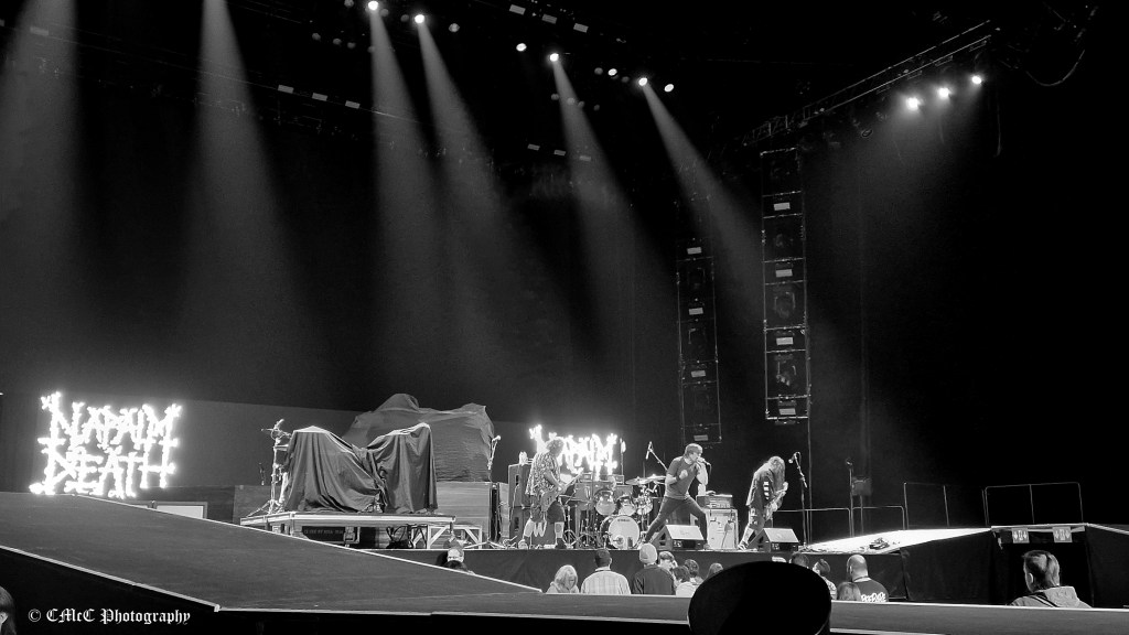 First band on stage for the evening were Napalm Death. That fact could explain the frighteningly low crowd numbers at this point. Thumper Principle duly applied, and we’ll move swiftly on….