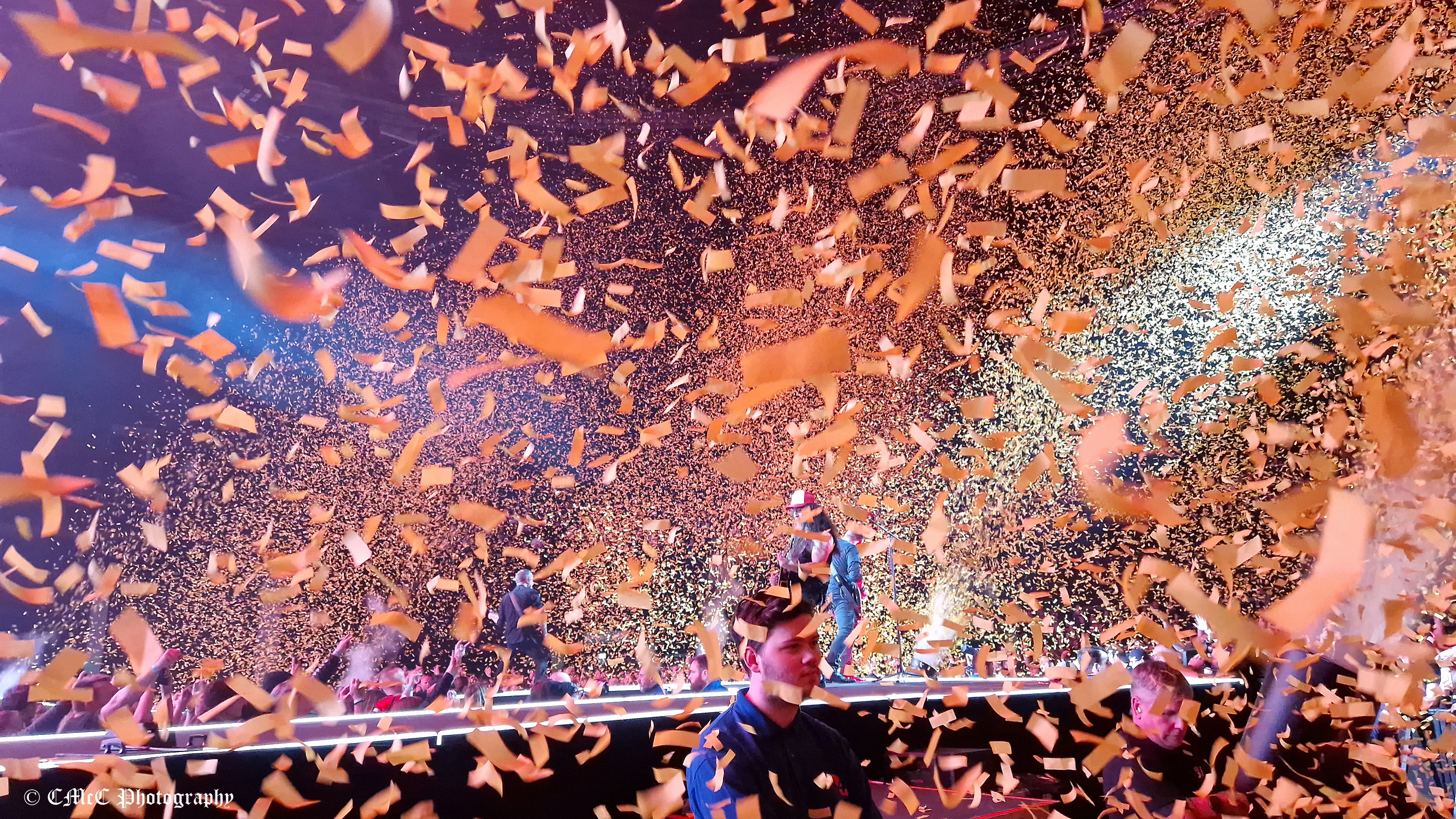 The “posh pit” still wasn’t full…. Yup, you guessed it. A member of staff did a second sweep of the rail offering out VIP wristbands in a final attempt to fill it before the headliners came on. If I had been someone who had paid full price for the “posh pit”, I’d be somewhat disgruntled by now…. but I totally get that they couldn’t leave it with only about 100 folk in it. Perhaps the hint there is that an arena the size of the OVO Hydro didn’t need the massive runway in the first place. A short centre runway would have sufficed…..just saying…
