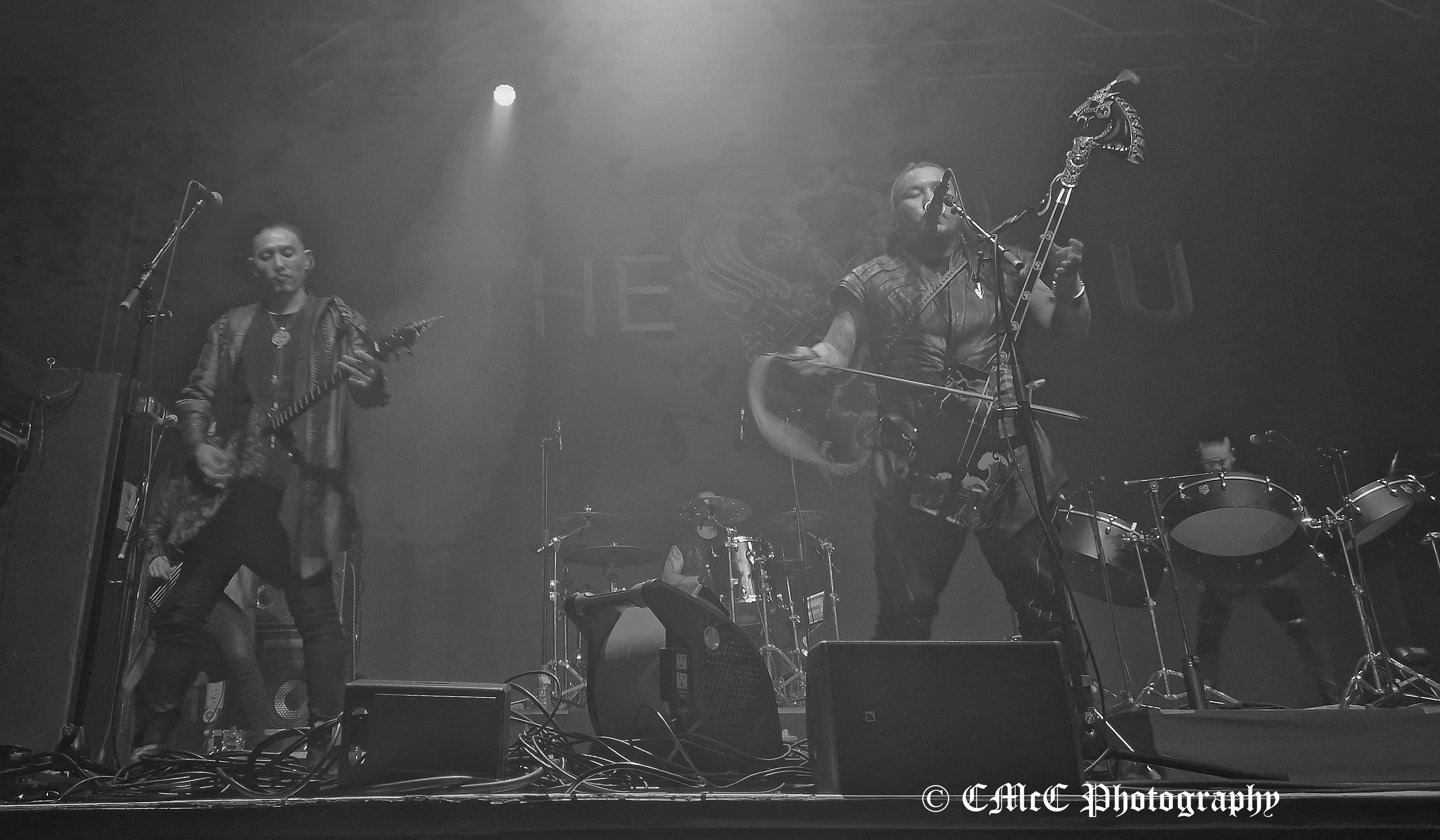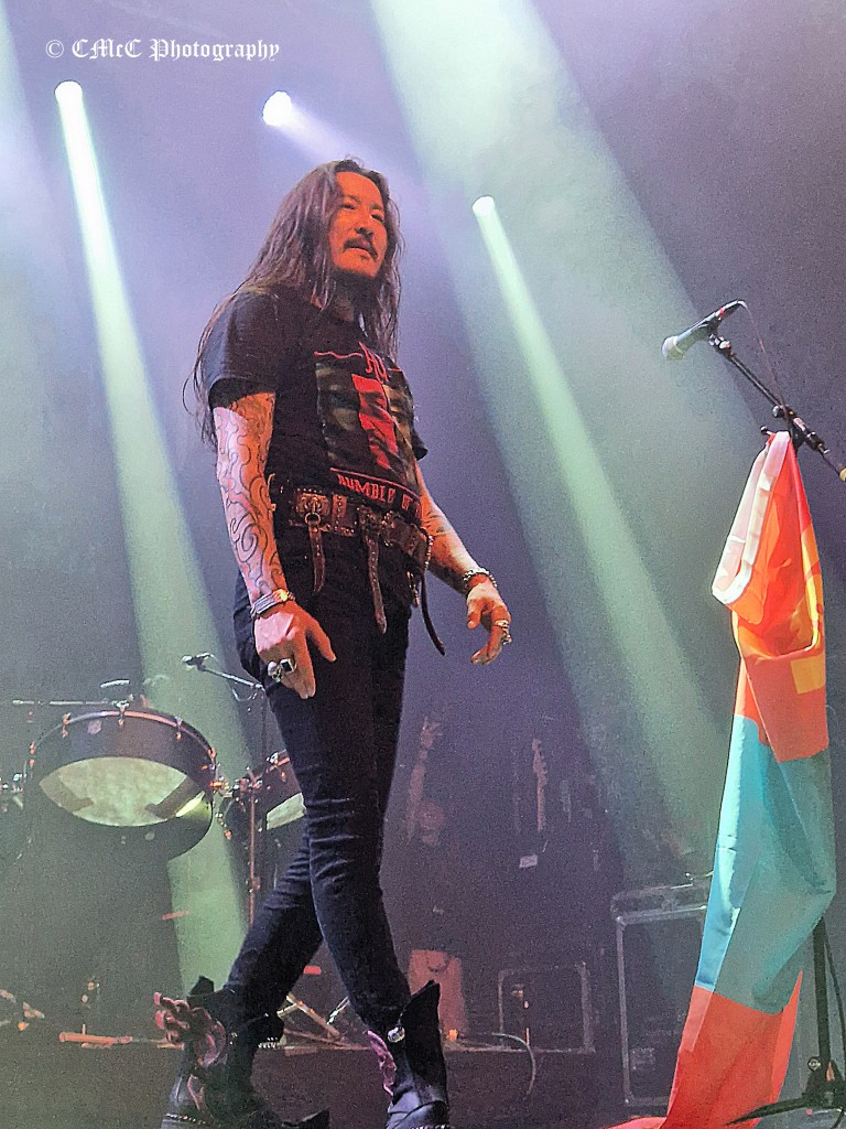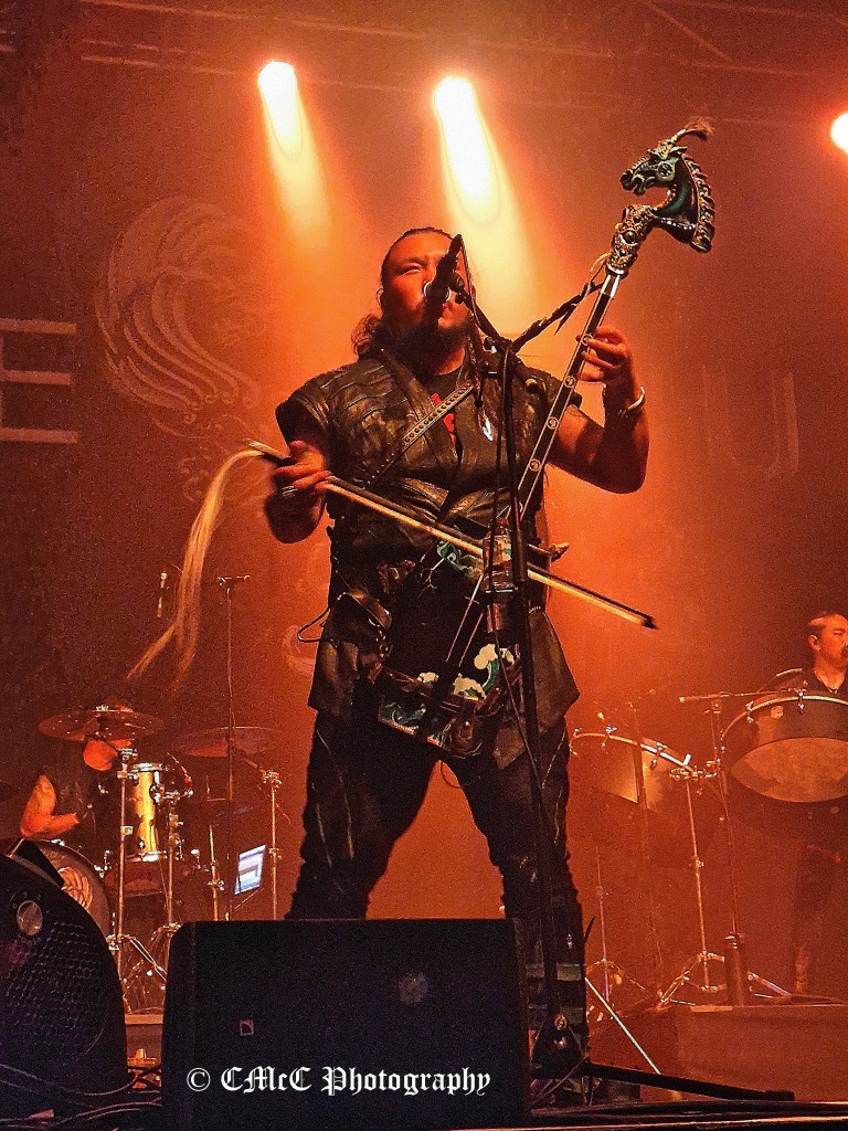 At 9 o’clock amid cheers and chants of “HU HU HU HU”, the band’s drummer was first out on stage to hang they standard on its pole centre stage as his bandmate’s followed. The HU opened their ninety-minute set with Hohochu Zairan. Badged as the Rumble of Thunder Tour, things were certainly off to a thunderous start.
