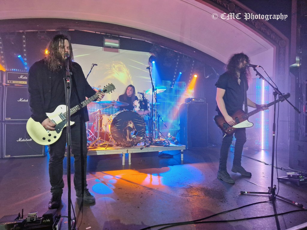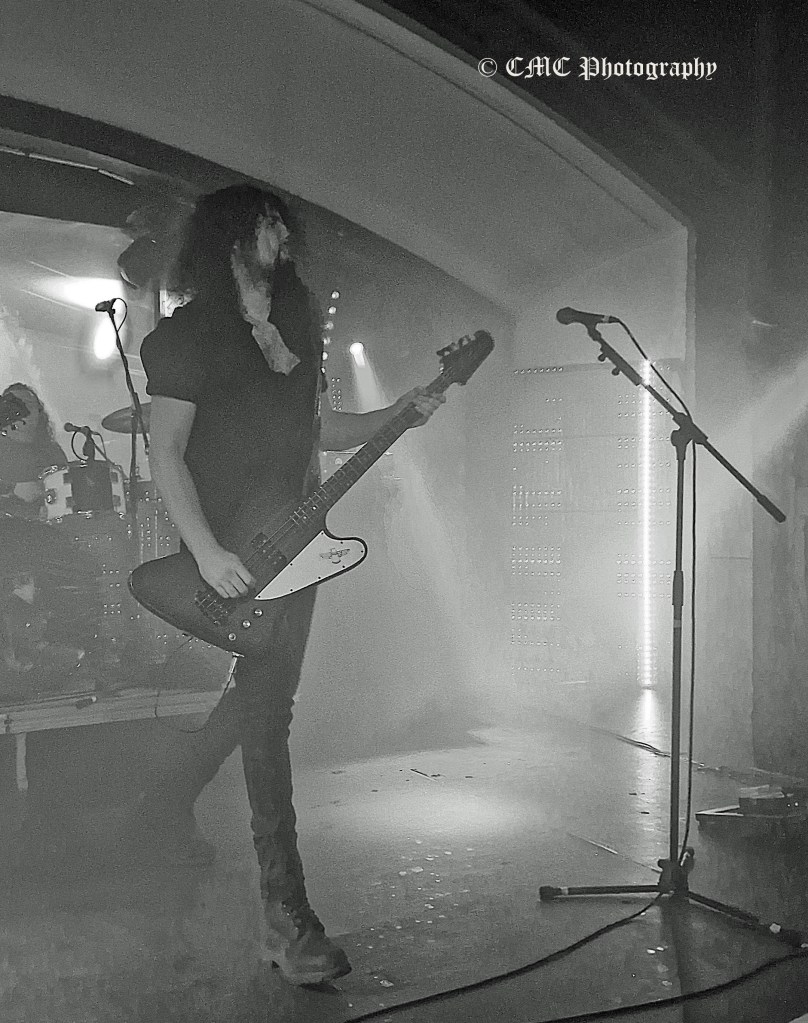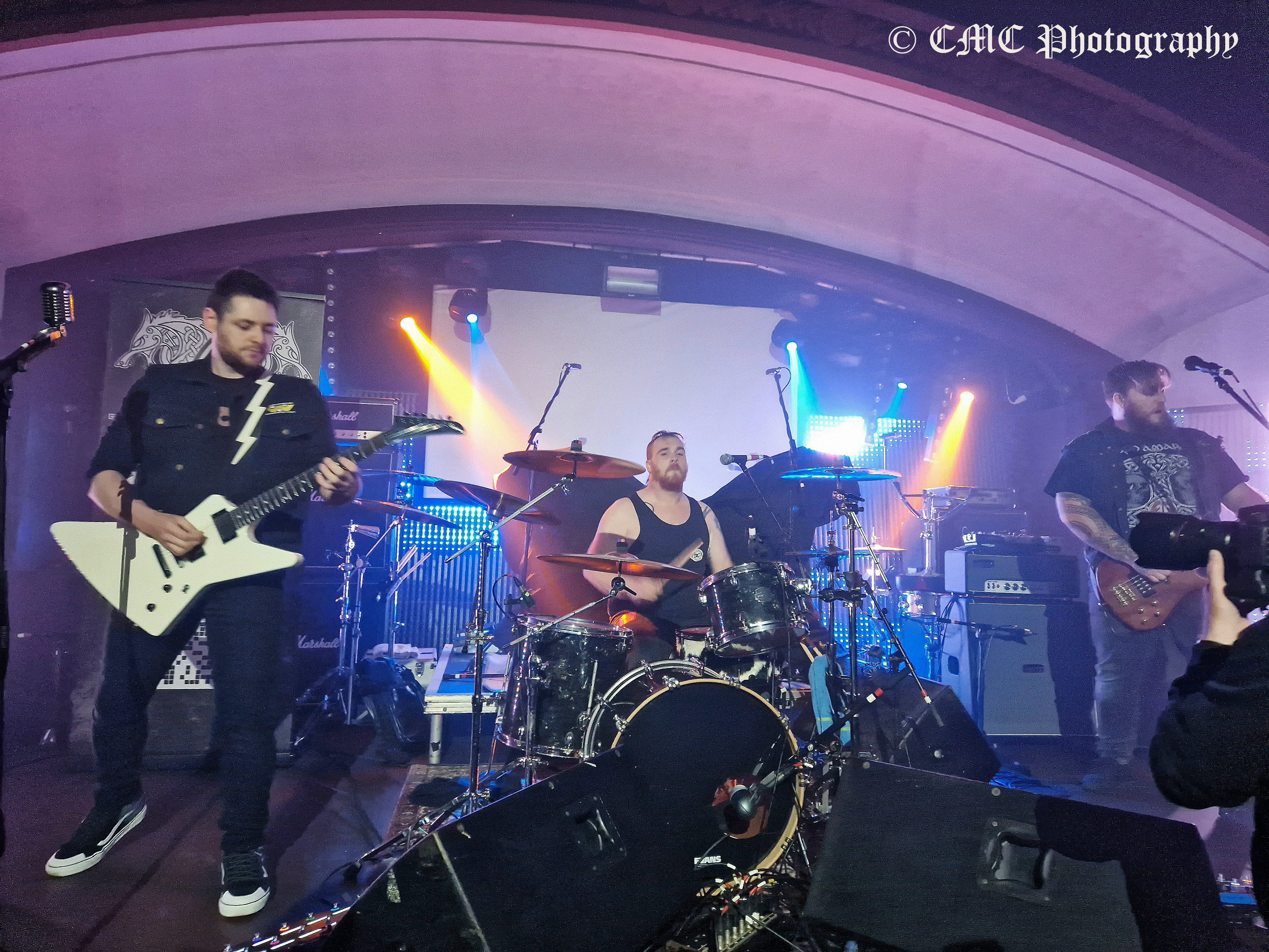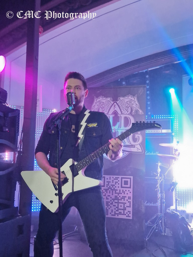 First out were Glasgow band, Eld Varg. These guys delivered a solid opening set of “Viking” metal. To my mind it was more “storyteller” metal (think Iron Maiden’s lengthy epic songs) but it was really engaging. A late addition to the bill, they proved a popular choice and swiftly had the growing crowd onside. Having commented that he needs to write shorter songs, front man Ollie announced that Wolfpack would be their fifth and final song for the night. I suspect it won’t be long before Eld Varg have a growing wolfpack following. Great start to the evening. Check them out online.