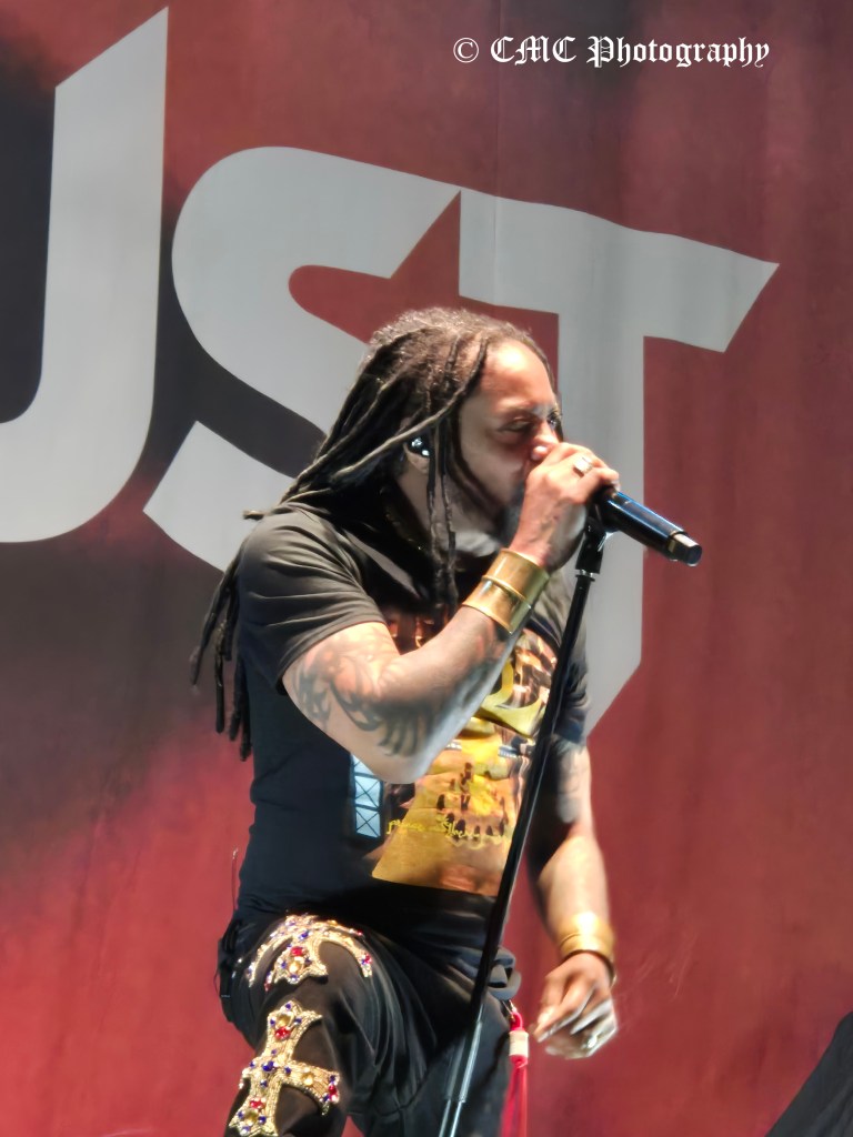At 6.55pm, Sevendust stepped out on stage to huge warm cheers from the crowd. With only half an hour or so at their disposal, Sevendust did not disappoint. Frontman Lajon Witherspoon did an amazing job of warming the fans up ready for the headliners.
